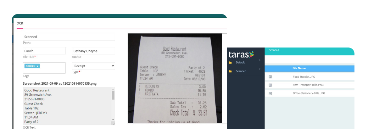 TarasDMS can perform full optical character recognition (OCR) to allow for full text search for the document making it an important tool in searching and referencing relevant document while retrieving information.